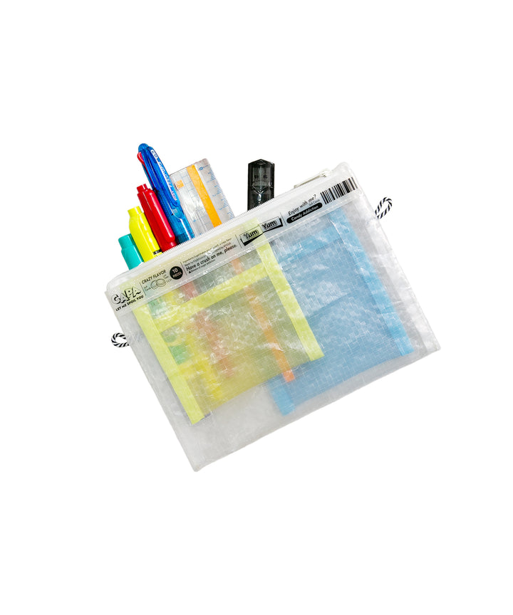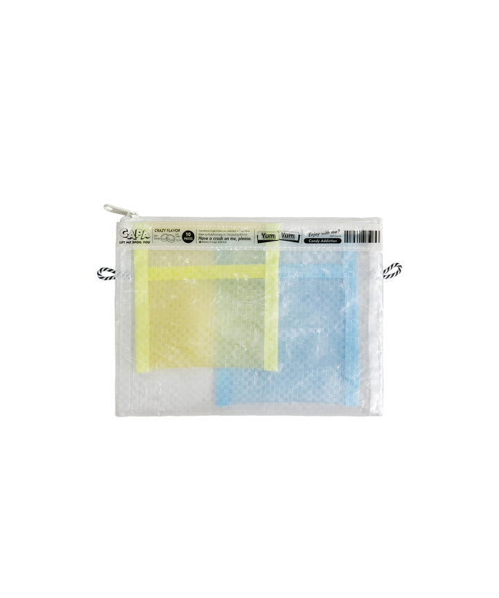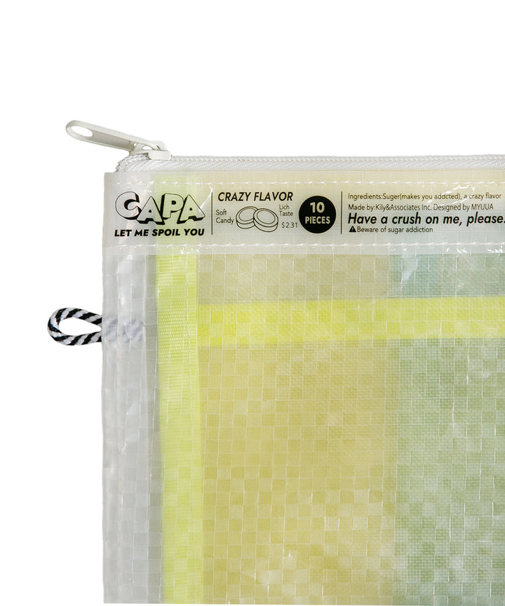 アメリカのPOPでクラシカルなお菓⼦のパッケージの可愛さを表現した新しいキャリングケースのブランド。シースルーの2⾊のポケットがついて、重なりあった部分は第3のカラーにもなっているのがポイントです。⽂具の仕分けにとっても便利。⼤サイズのポケットにはスマホも⼊ります。両サイドについたループ紐を活かせば、キーリングを付けられたり、ショルダーポシェットとしても使⽤できます。3種類の異なる⽣地を使⽤することで、異素材MIXの⾯⽩さと様々なシーンで使えるアイテムです 。