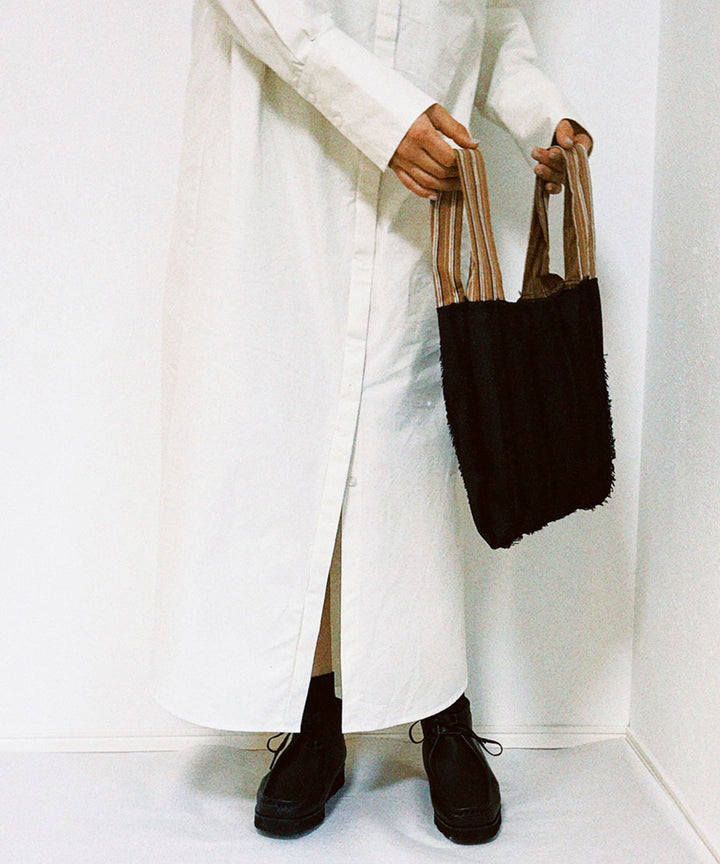 生地はデザイナーが市場で探して見つけた、こだわりのもの。本体と持ち手もそれぞれ違う生地を使用しました。触り心地や、生地の表面感にもこだわったトートバッグ。思わず揃えたくなる4色展開、あなたの日常にぴったりなバッグがきっと見つかるはず。