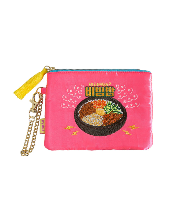 あっつあつが美味しい石焼ビビンバをスカジャン風に総刺繍したポーチです。