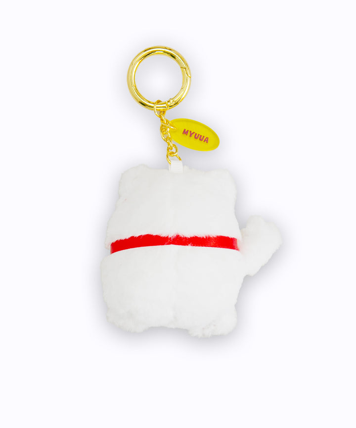 ぱっちりとしたまつ毛とお目目がチャームポイントにしたふわふわの招き猫のぬいぐるみキーチェーンです。
