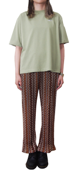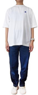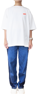 長繊維系のコットンを使用しているため、繊維強度があるのにしなやかで手触りの良い天竺を使用したTシャツです。ネックも広すぎないバランスに納め、ワイドなシルエットも生地のドーレープで全体的に大人な印象を感じるデザインとなっています。