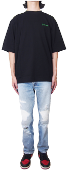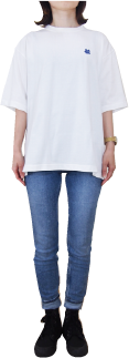 長繊維系のコットンを使用しているため、繊維強度があるのにしなやかで手触りの良い天竺を使用したTシャツです。ネックも広すぎないバランスに納め、ワイドなシルエットも生地のドーレープで全体的に大人な印象を感じるデザインとなっています。薄すぎない生地ながらも品のある印象を持たせ、ざっくりとラフにきてもカジュアルにならないのが特徴です。