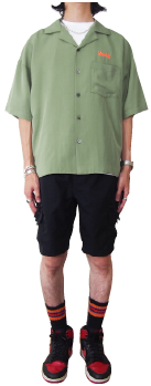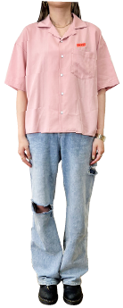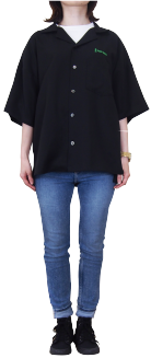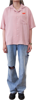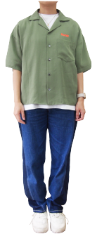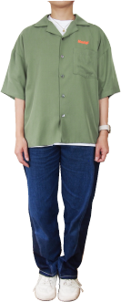 レーヨンを使用し、表面の落ち着いた光沢感が特徴的な生地です。ボーイズシルエットながらも、裾のスリットや素材のレーヨンのドレープ感がモードな印象を与えてくれます。
