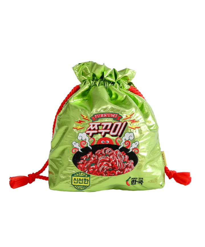 MYUUAの世界の食文化シリーズから、韓国の人気グルメ「チュクミ鍋」をモチーフにした巾着ポーチが登場!