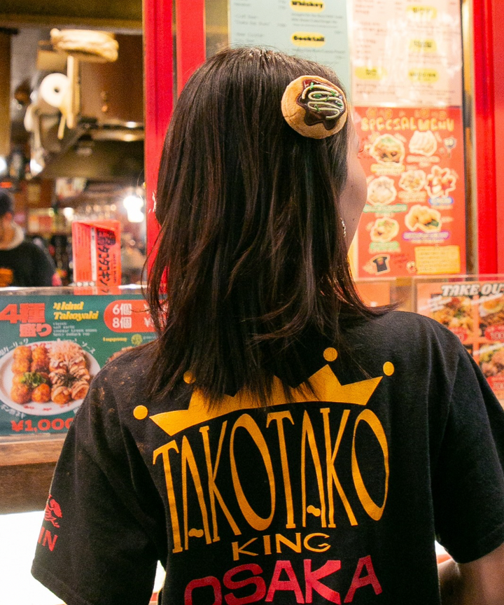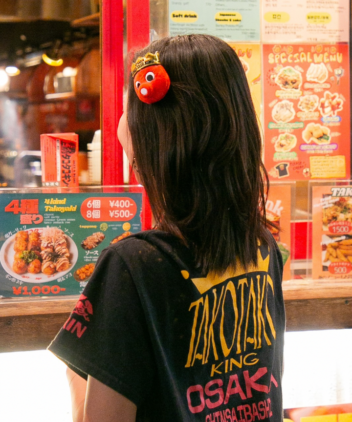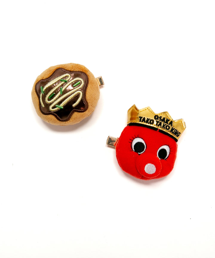 そんなタコタコキングの看板キャラクターのタコとたこ焼きのヘアクリップはメタリック生地やビーズをあしらった