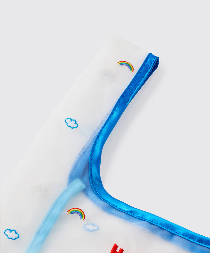 カラーごとに異なる刺繍モチーフ——恐竜、虹、スマイルマーク、リボンなど——は、