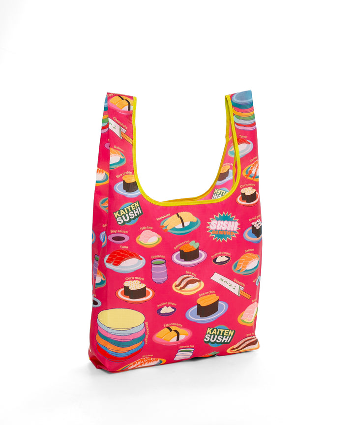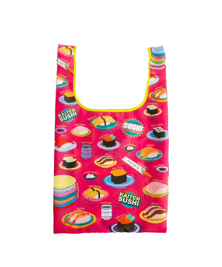 回転寿司へ行った時の、今日は何皿食べられるだろう?というあの独特のワクワク感をエコバッグにしました。