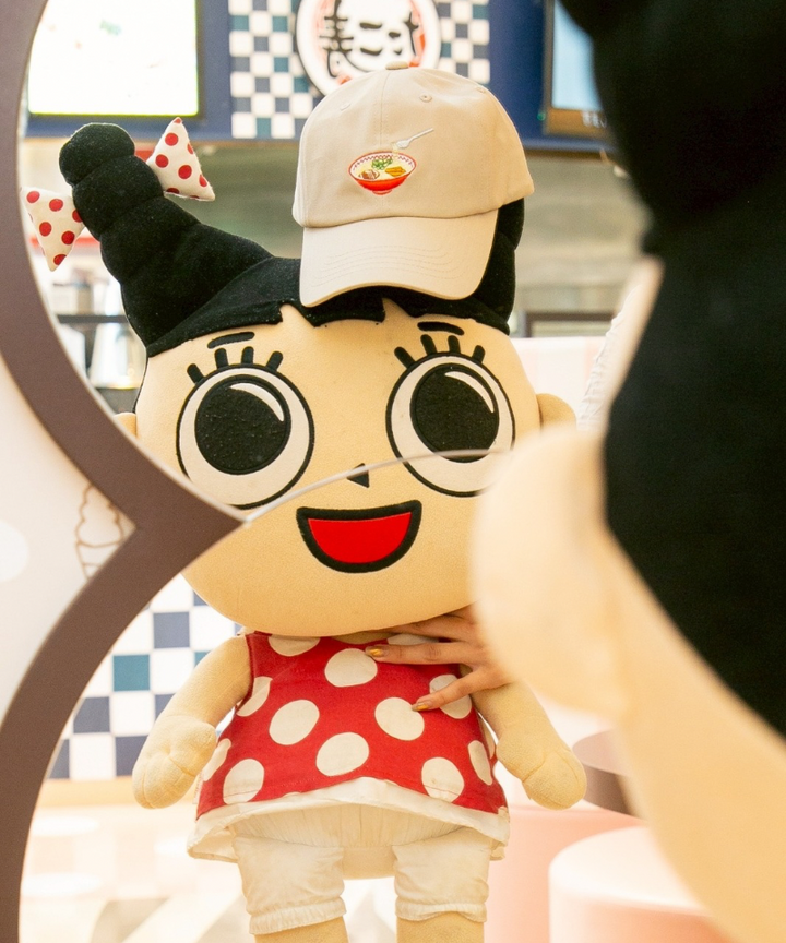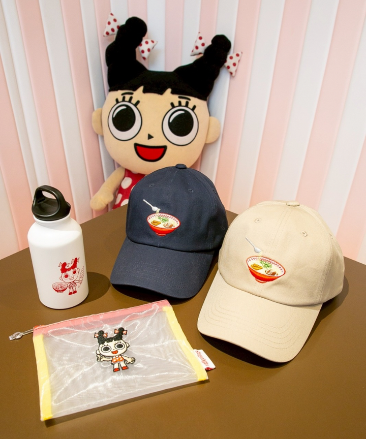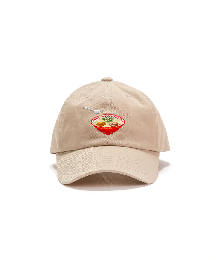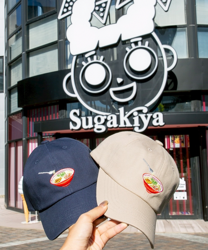 メンマ、チャーシュー、ネギが乗ったスガキヤラーメンを大きく描いたラーメンキャップは